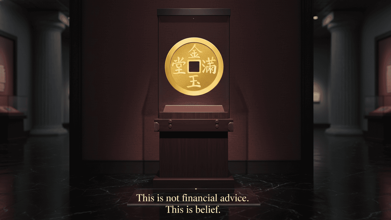 An ancient Chinese coin whispered about in forbidden scrolls, buried under dynasties, rediscovered only when markets became irrational enough to summon it.